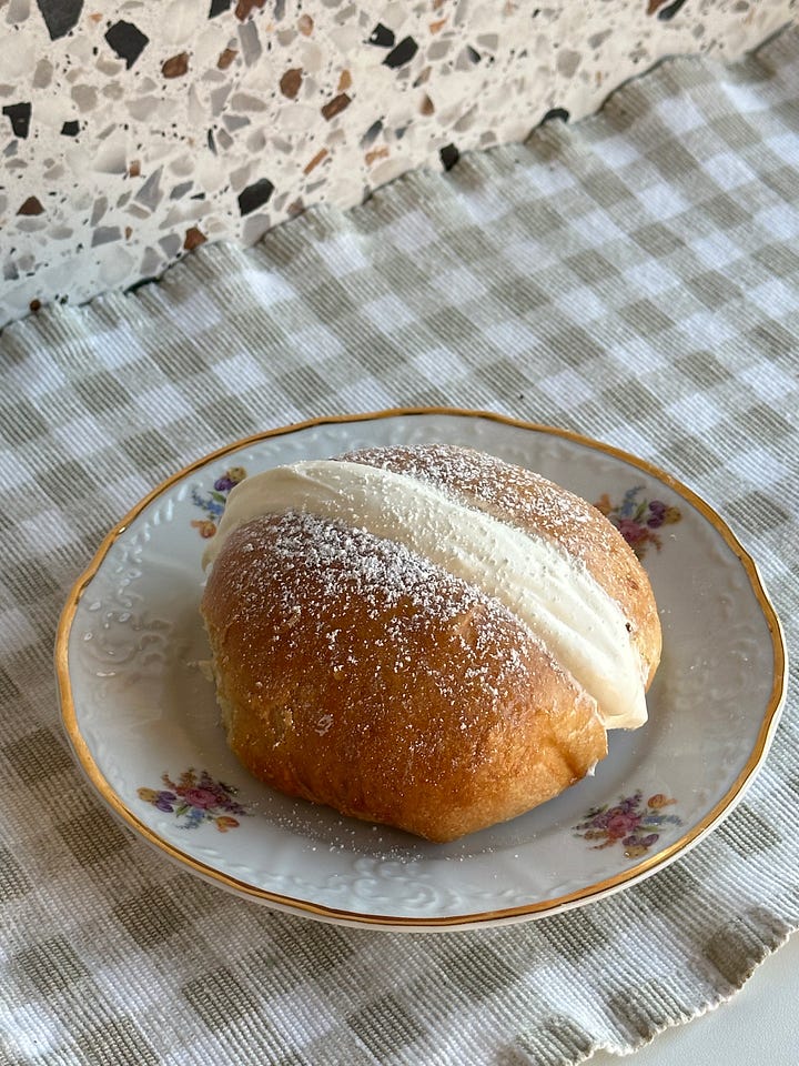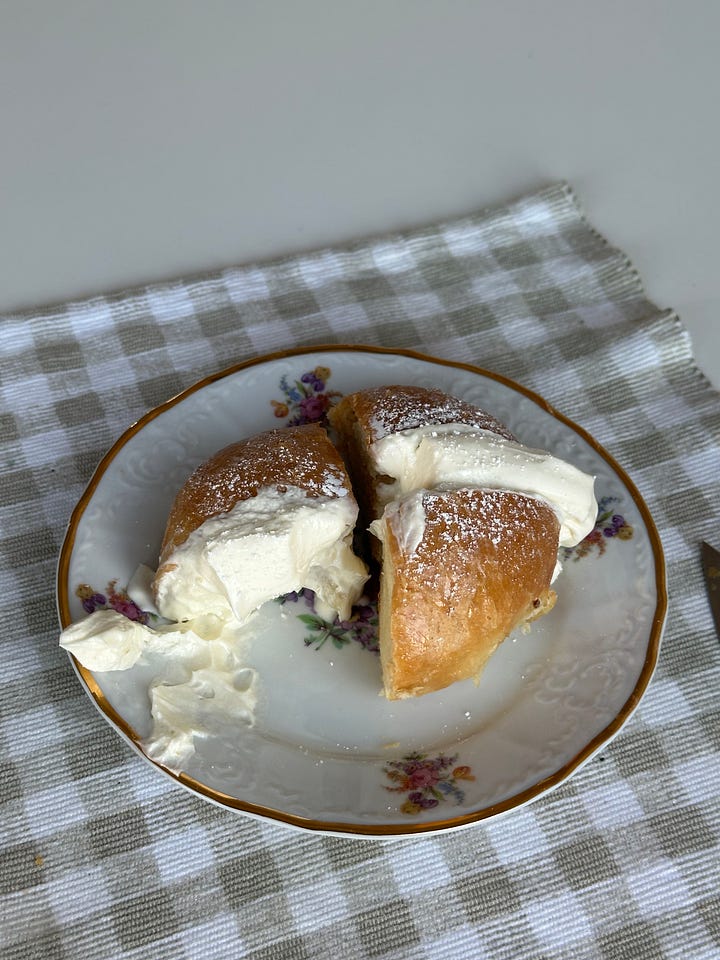 Hello. Time for another recipe eeep. Looking at this bun after the bake, I thought to myself Maritozzi - the Italian Cream Bun that is absolutely divine. I didn’t set out to re-create this bun. I wanted more cream in the bun and settled on this structure. Assembling the cardamom bun, I wanted more cream so I cut it down the middle and there the cream sat all pretty. I don’t think it’s exactly a Maritozzi because of the cardamom. I reverted to a google search if there is a cultural tie to cardamom with dough. Enter the traditional Swedish cardamom cream bun, Selmor or Selma. Selmor, has the addition of an almond paste. Yum. I must try or try to bake? The shape of is also different from the maritozzi. Back to the bun at hand. A cross between a maritozzi and semla, spiced with cardamom and topped with a brown sugar syrup glaze.