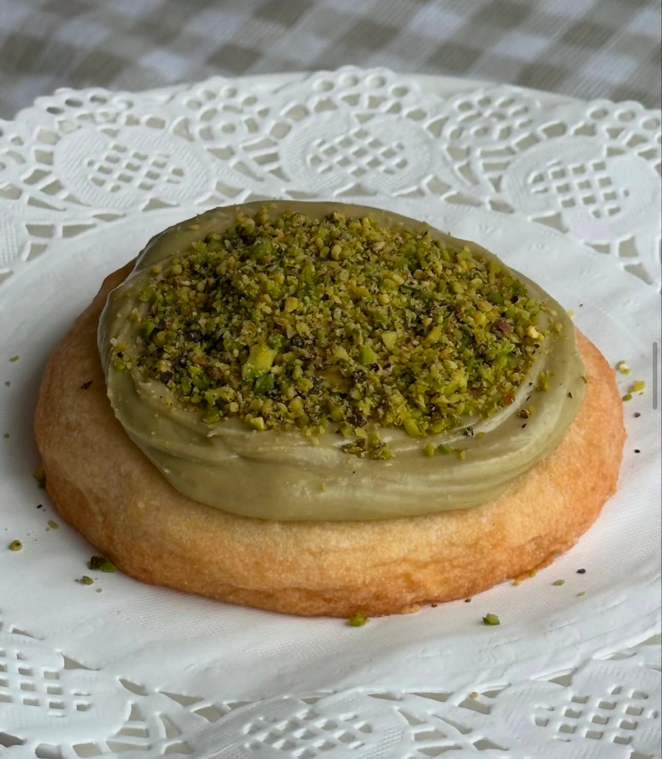 Hello, sometimes the holiday season will be bitter sweet. Missing loved ones. Losing loved ones. I know that cookies make it all feel better. Just a little-lot. They heal the heart you know? Any way, this may look like a crumbl cookie. I wouldn’t know if it would taste like one, I live in Australia. Either way it’s a variation of my shortbread cookie recipe and it’s giving simple and pistachio. It’s a perfect Christmas bake.